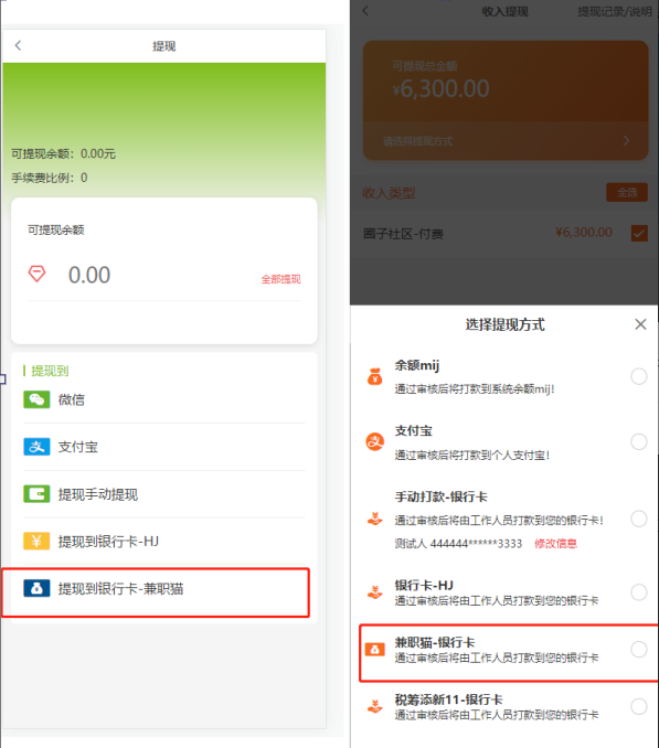 商城后台-财务-提款信息: 新增 ‘提款到兼职猫-银行卡’ 提款方式